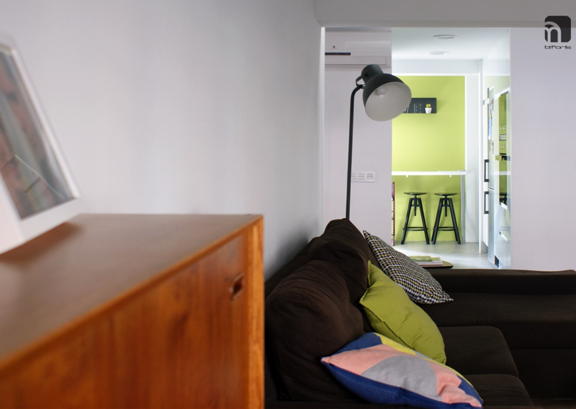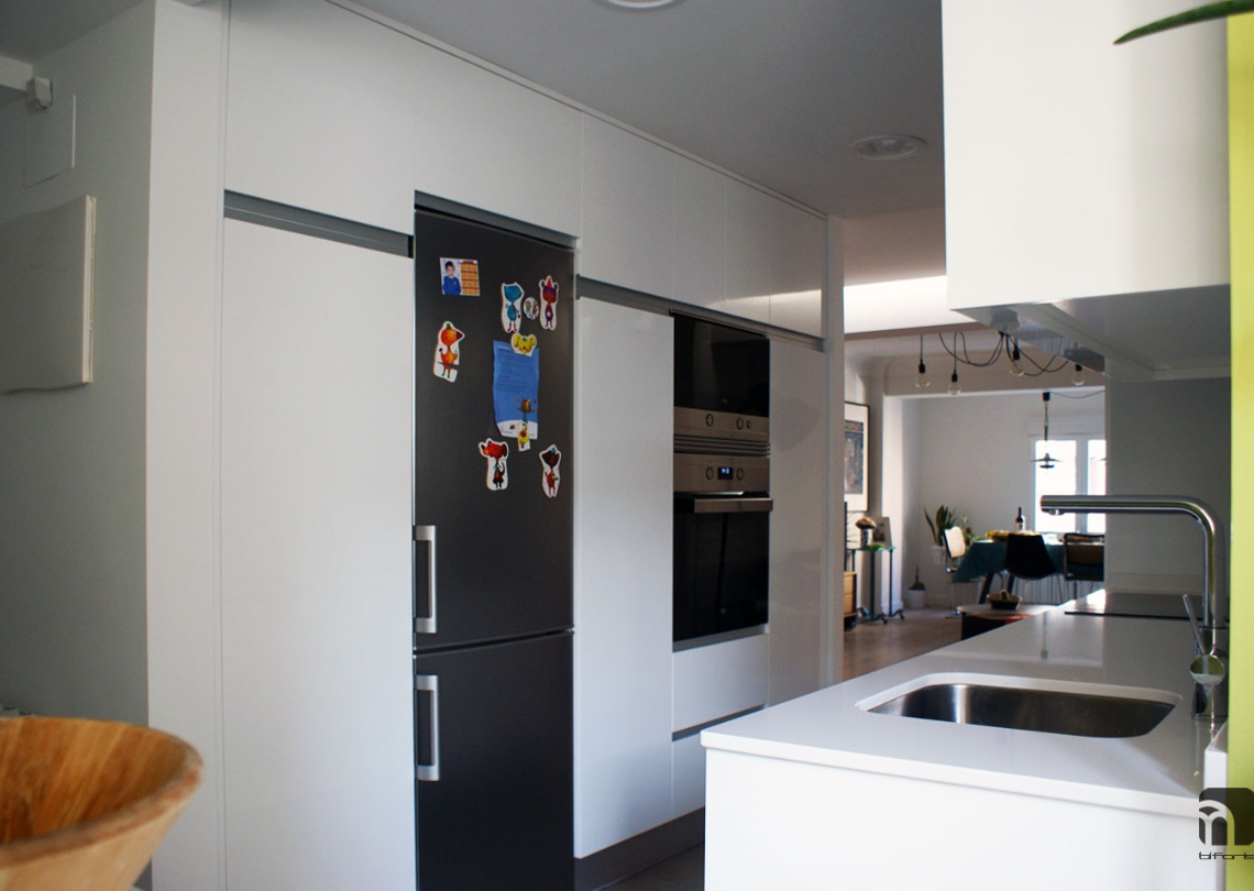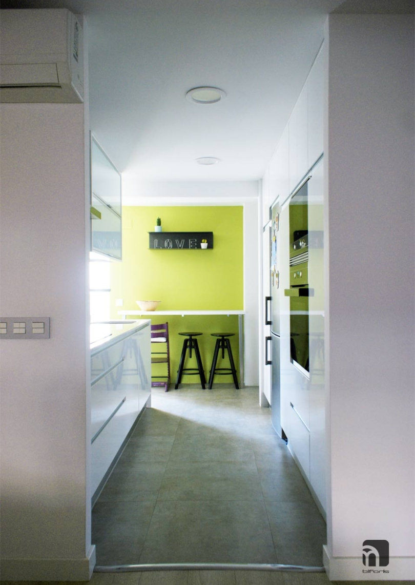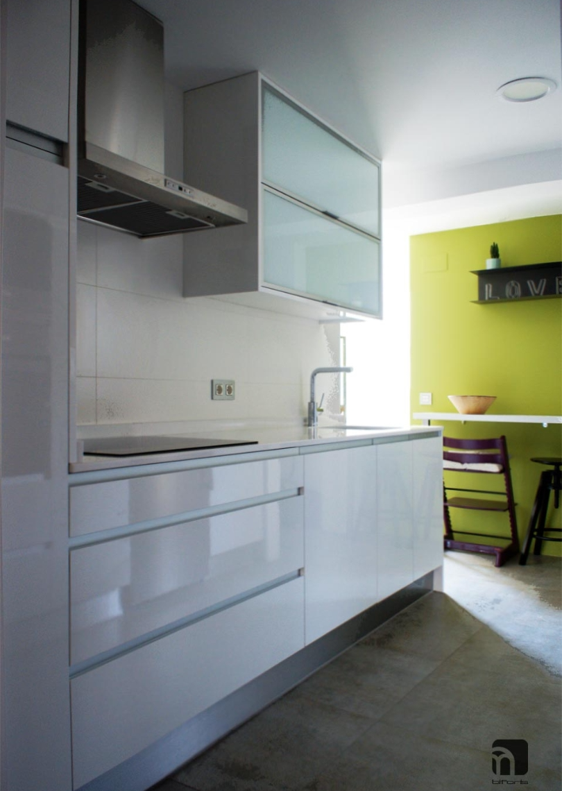 Un espacio amplio que integrase la diaria vida en común de la familia, fue la premisa principal de la reforma de este piso de los años 60. Un recibidor abierto al salón comedor. Comunicación directa entre el salón comedor y la cocina , y una terraza acristalada a continuación de ésta, confieren al conjunto ya de por sí espacioso, una continuidad física y visual, para libertad de las sensaciones.