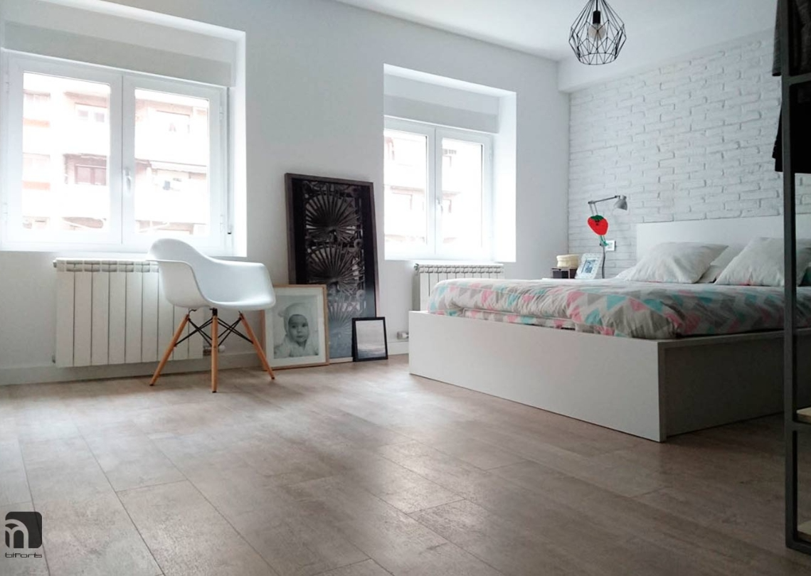 El proyecto conserva la distribución original de tres dormitorios, salón, cocina, baño y aseo, modificando únicamente el acceso y comunicación entre ellos.